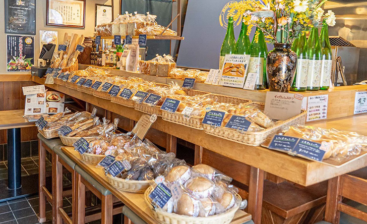 自家製酵母ならではの深い味わいとしっとりした食感が特徴で、普段のお食事やお酒のおつまみにもぴったりなパンが並びます。